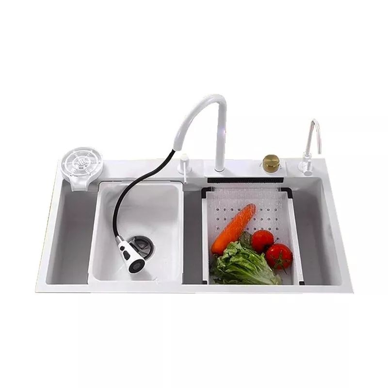 سینک ظرفشویی آبشار ولومی سنسوردار سایز 75 هوادیو HuaDiao انتخابی مناسب برای آشپزخانههای مدرن، مینیمال و حتی کلاسیک است. این محصول برای شستشوی روزمره ظروف، آمادهسازی مواد غذایی، رعایت بهداشت و مدیریت سریعتر امور آشپزخانه کاربردی میباشد. امکاناتی مانند لیوان شور، شیر شاوری و جامایع روی سینک، این محصول را به یک ایستگاه کامل شستشو تبدیل کرده است.